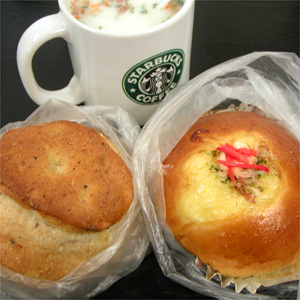 “チーズとほうれん草のオーツ麦(左)”と“焼きそばパン(右)”。