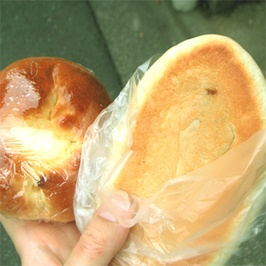 ヘルシーでぺろりと食べられる“焼きカレーパン(右)”。