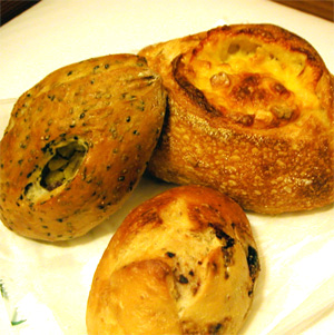 (手前から時計回りに)“イチヂク”,“サツマイモセサミ”,“チーズバタール”。