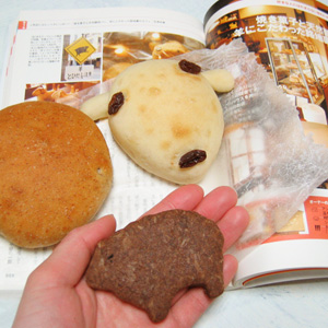 手前から時計回りに“ひつじショートブレッド”、“クルミパン”、“ひつじパン”。