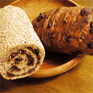 左の“うづまきゴマレーズン”は、ゴマたっぷりの生地でカレンツを